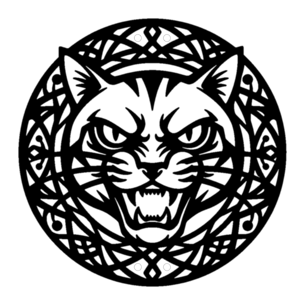 Fierce cat face stencil with a decorative circular frame, great for unique decor. Free DXF and SVG files, resize to any size and download instantly for laser cutters, CNC machines, and engravers.